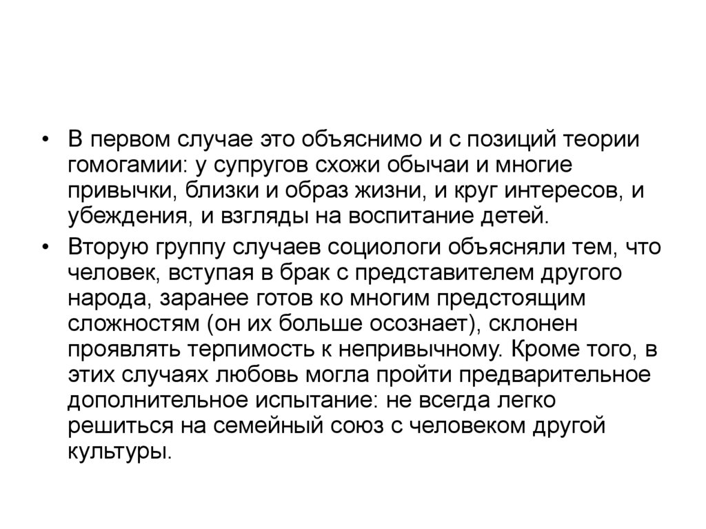 • В первом случае это объяснимо и с позиций теориигомогамии: у супругов схожи обычаи и многие