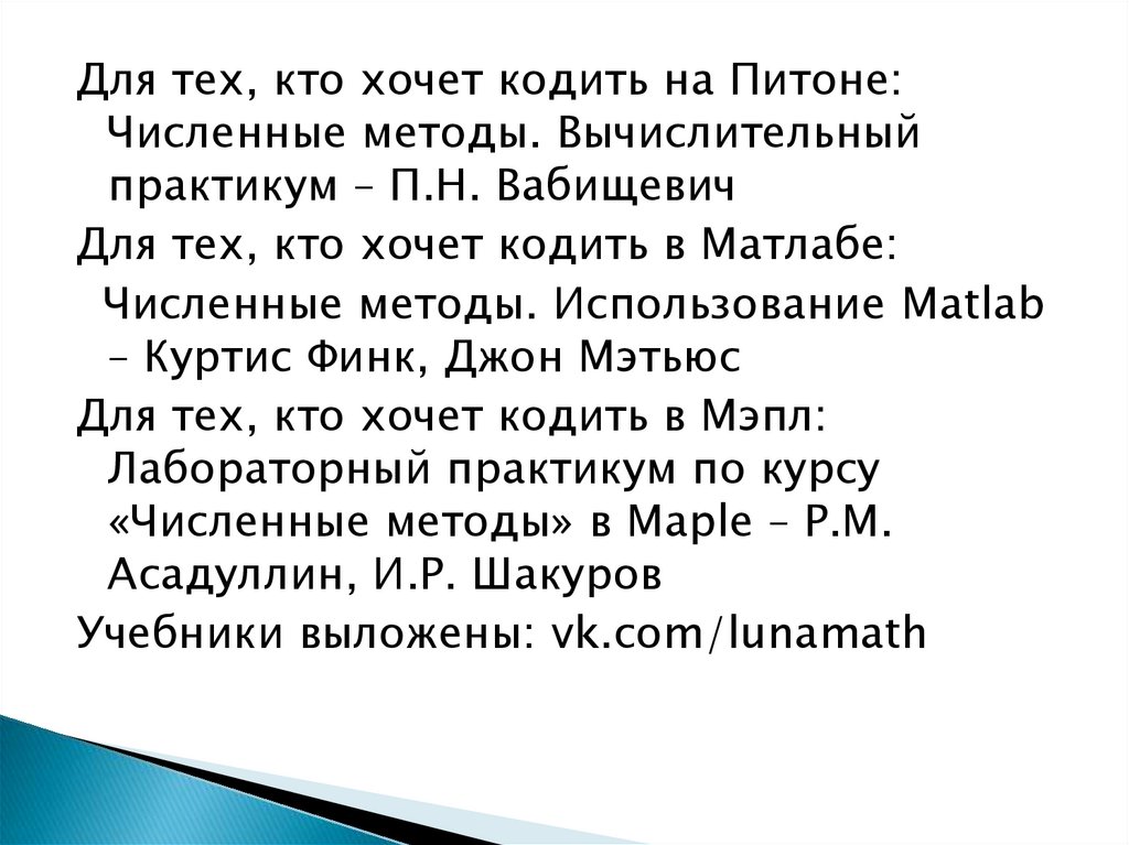 Для тех, кто хочет кодить на Питоне:Численные методы. Вычислительный