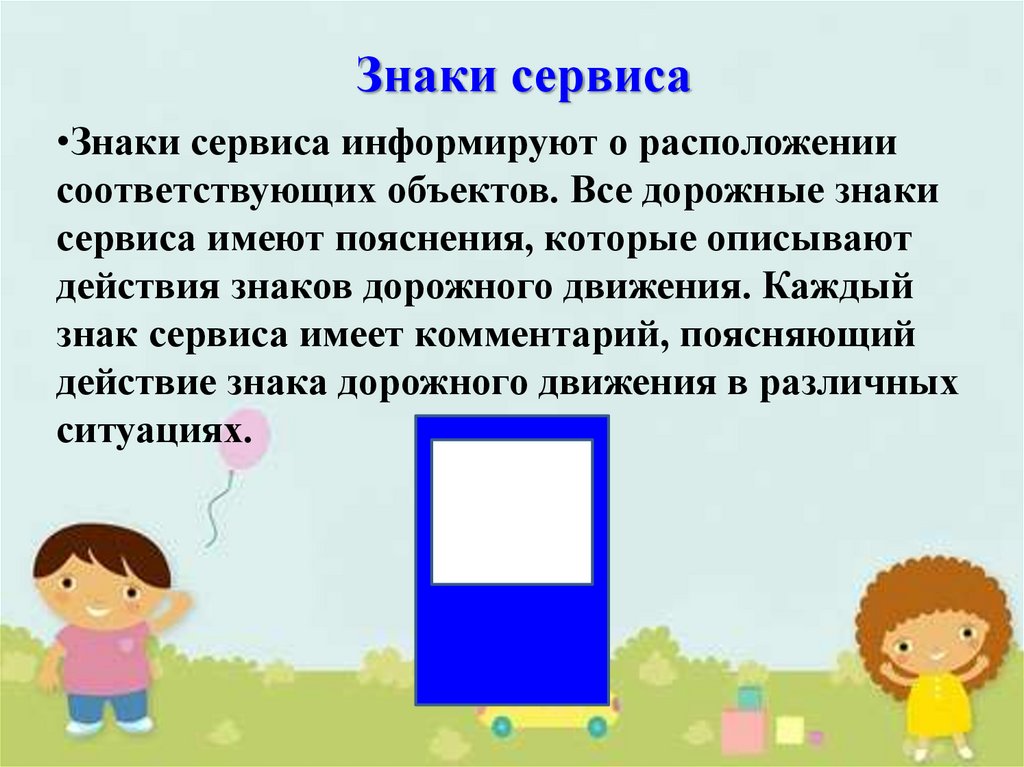 Знаки сервиса•Знаки сервиса информируют о расположении