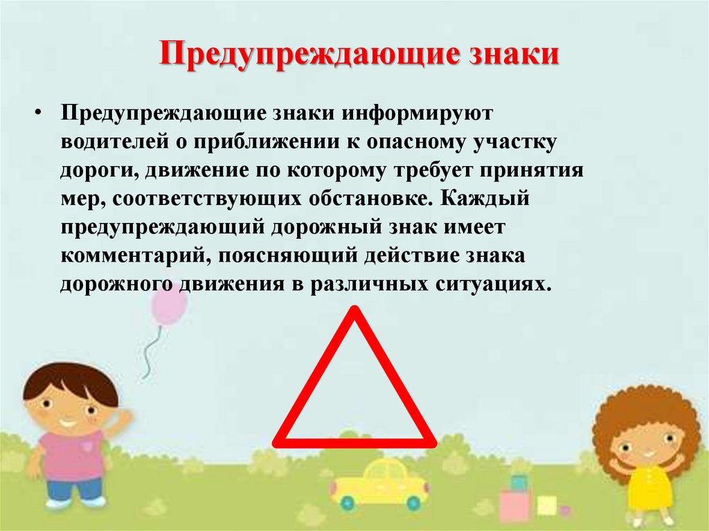 Предупреждающие знаки• Предупреждающие знаки информируют