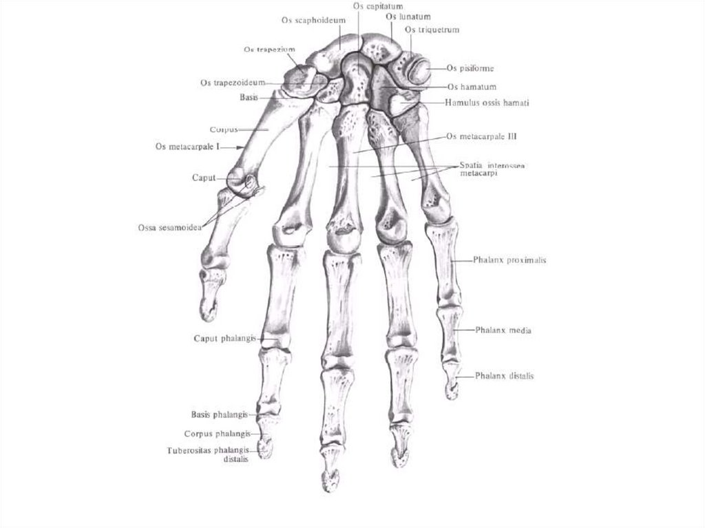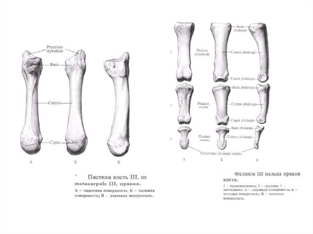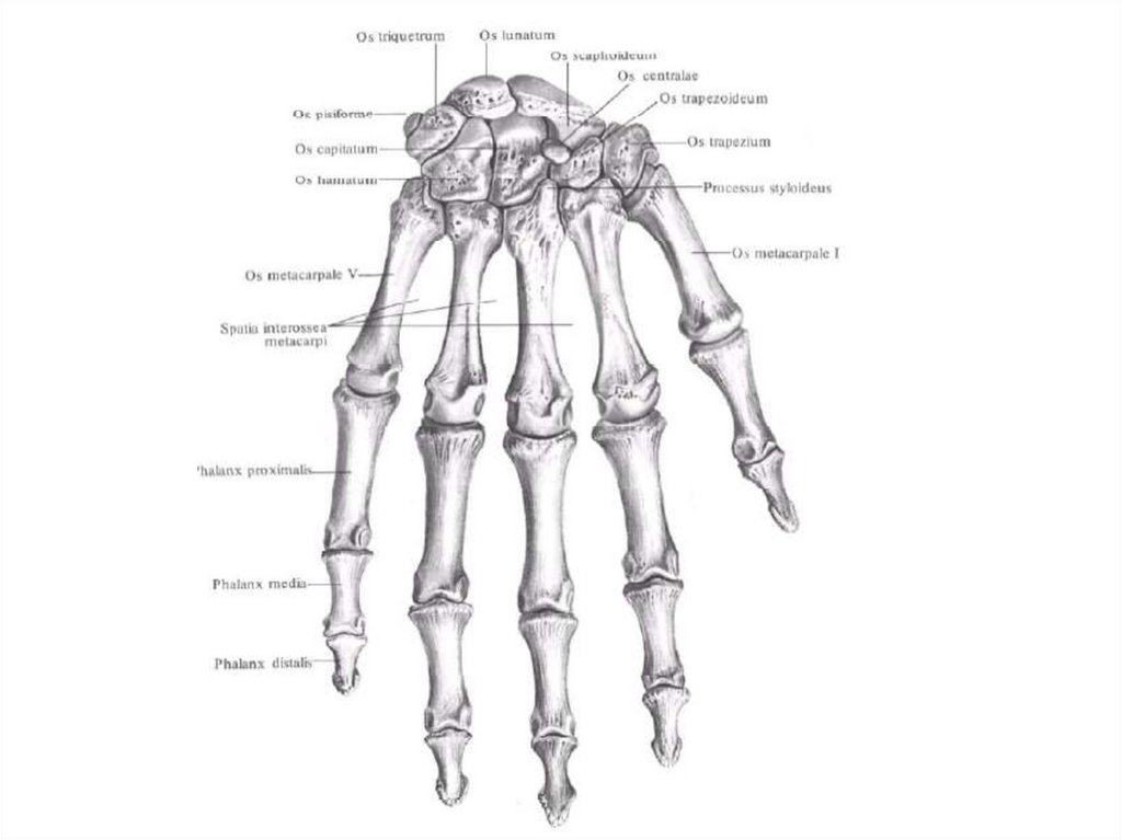 Строение костей кисти.