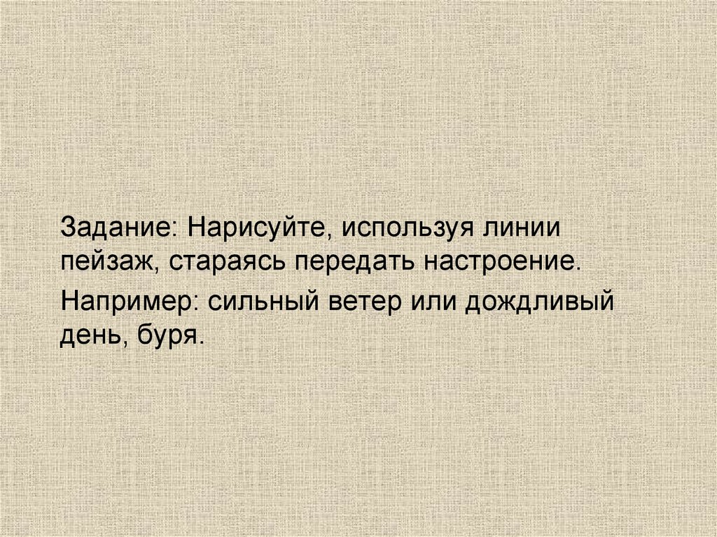 Задание: Нарисуйте, используя линиипейзаж, стараясь передать настроение.