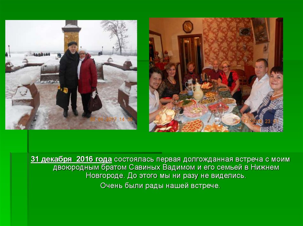 31 декабря 2016 года состоялась первая долгожданная встреча с моимдвоюродным братом Савиных Вадимом и его семьей в Нижнем