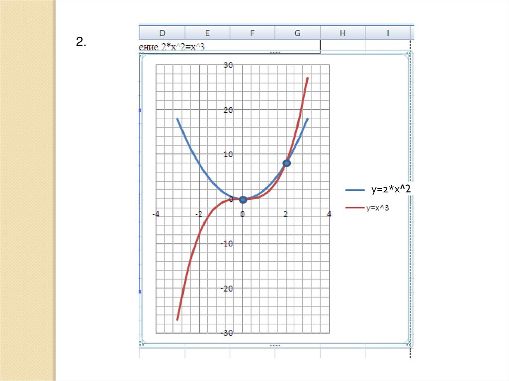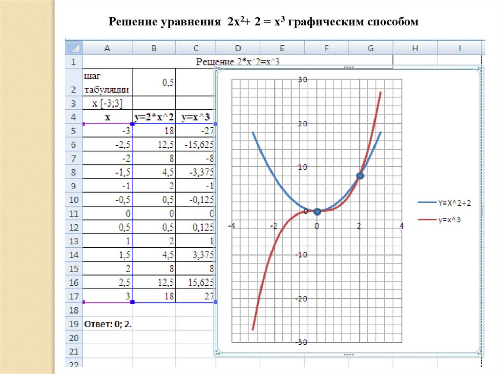 Решение уравнения 2х2+ 2 = х3 графическим способом