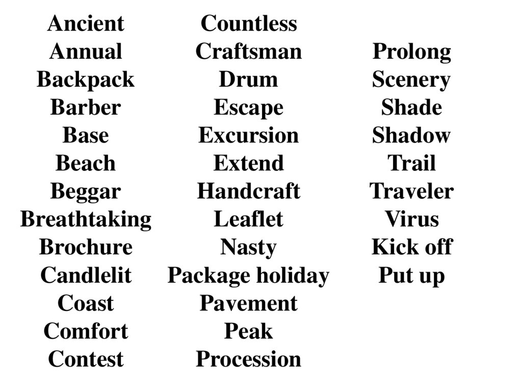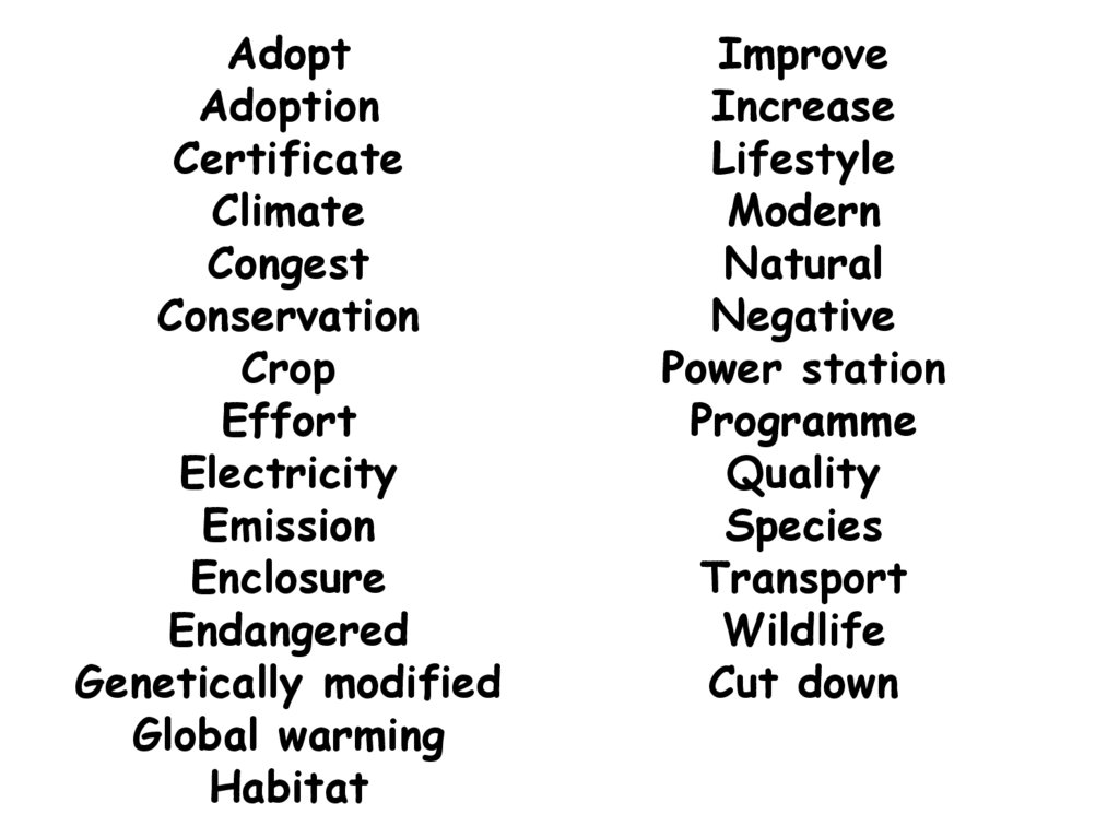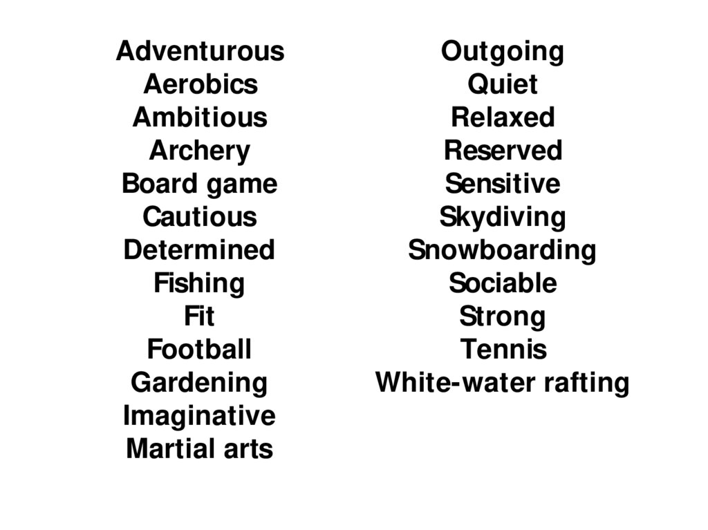 • A variety of adjectives