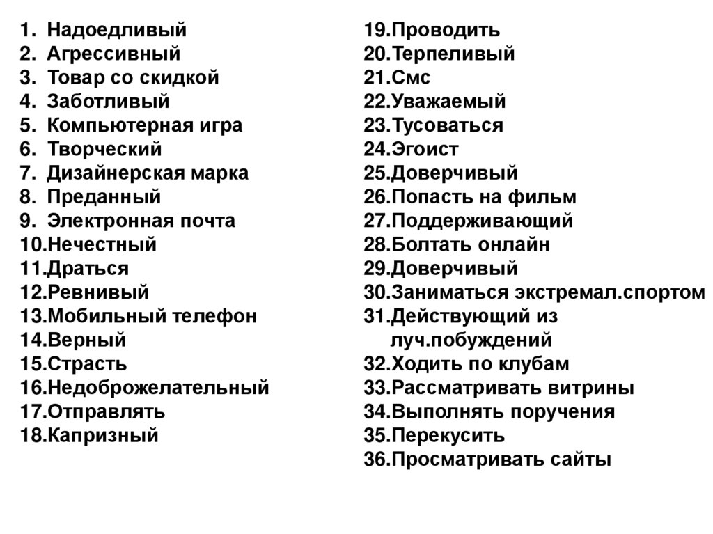 1. Надоедливый2. Агрессивный