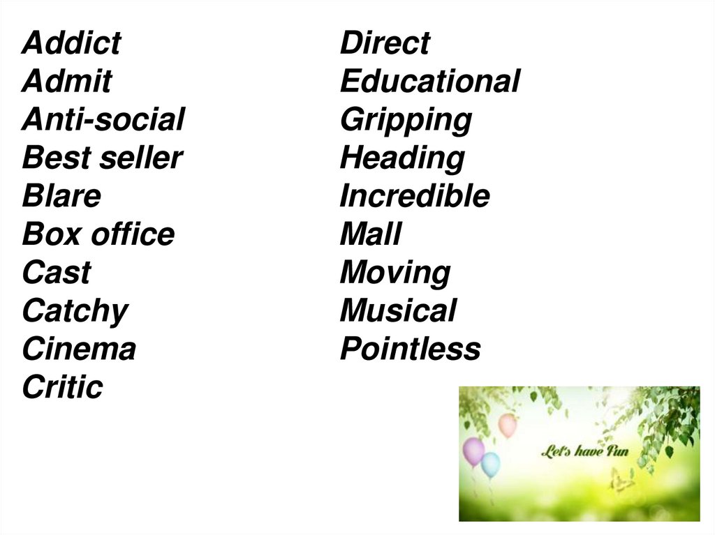 26.Попасть на фильм