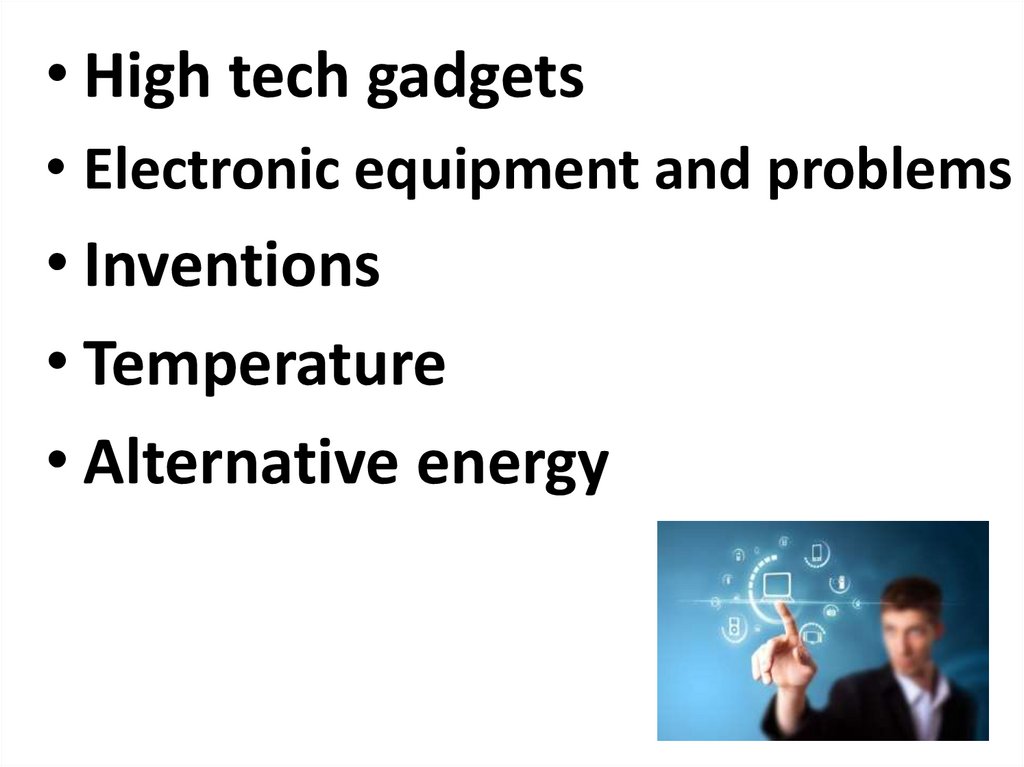 • High tech gadgets• Electronic equipment and problems