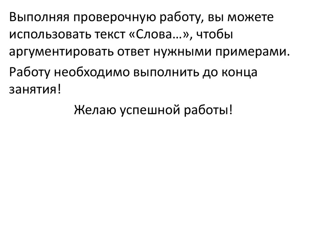 Выполняя проверочную работу, вы можетеиспользовать текст «Слова…», чтобы