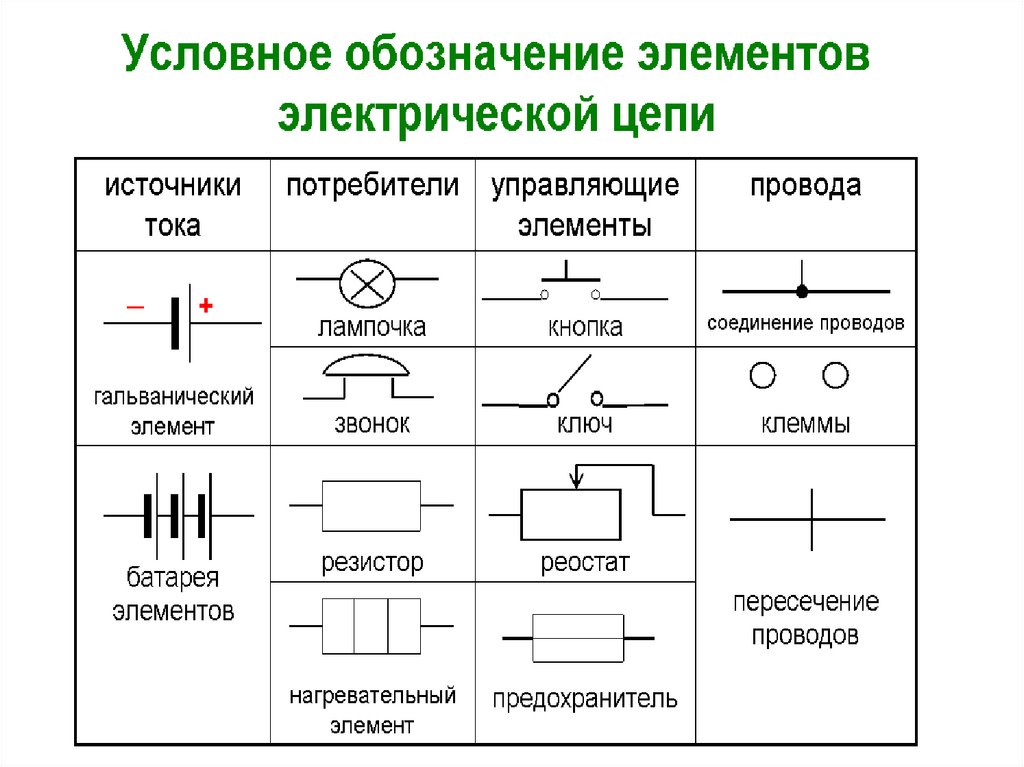 2. Электрическая цепь состоит из: 1. источника тока; 2. приемника; 3. замыкающего устройства; 4. соединительных проводов.