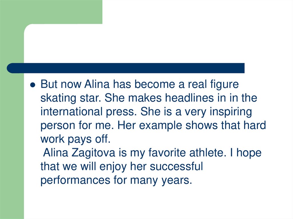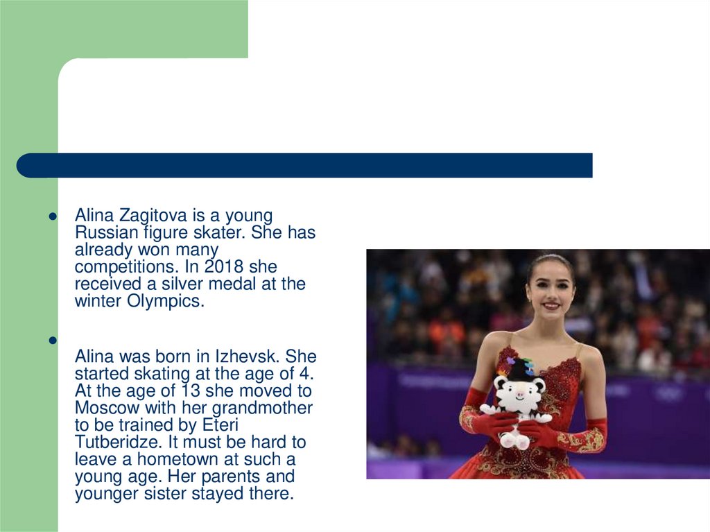 But now Alina has become a real figureskating star. She makes headlines in in the