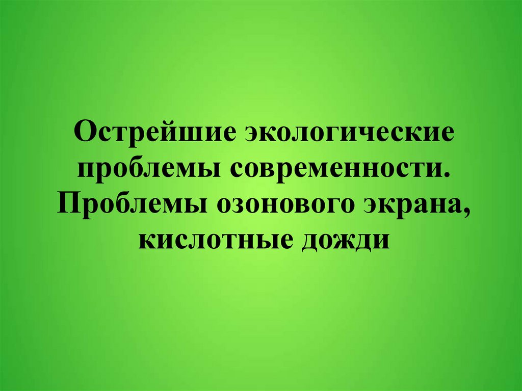 Острейшие экологические проблемы современности. Проблемы озонового экрана, кислотные дожди