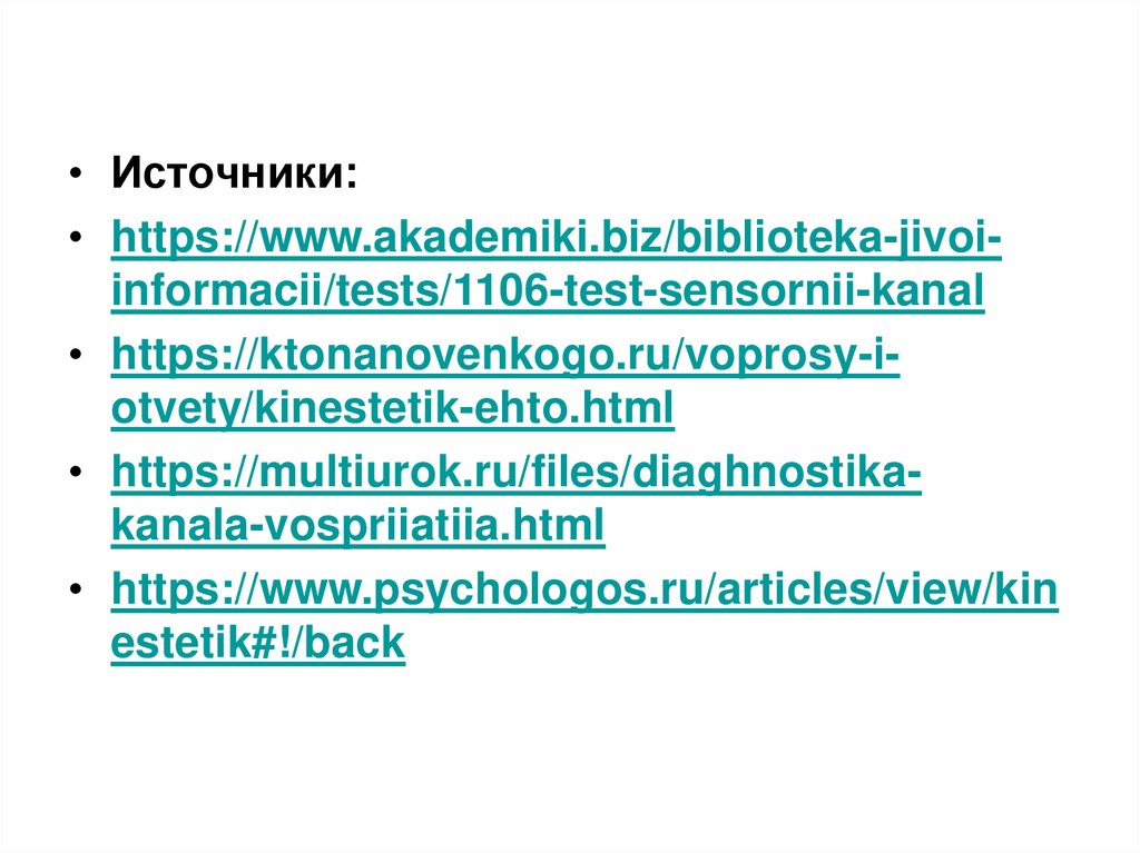 • Источники:• https://www.akademiki.biz/biblioteka-jivoiinformacii/tests/1106-test-sensornii-kanal