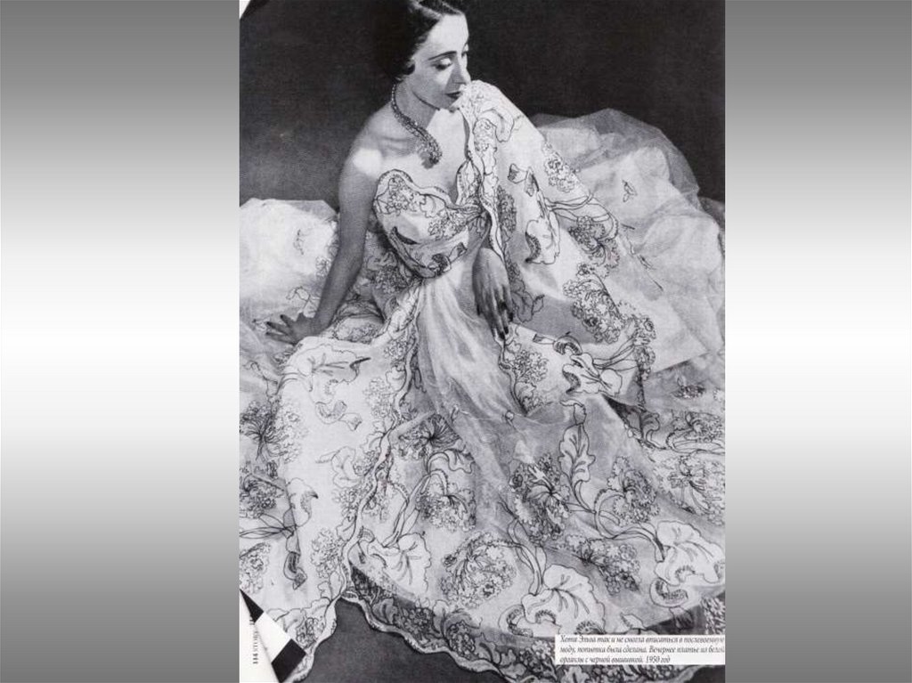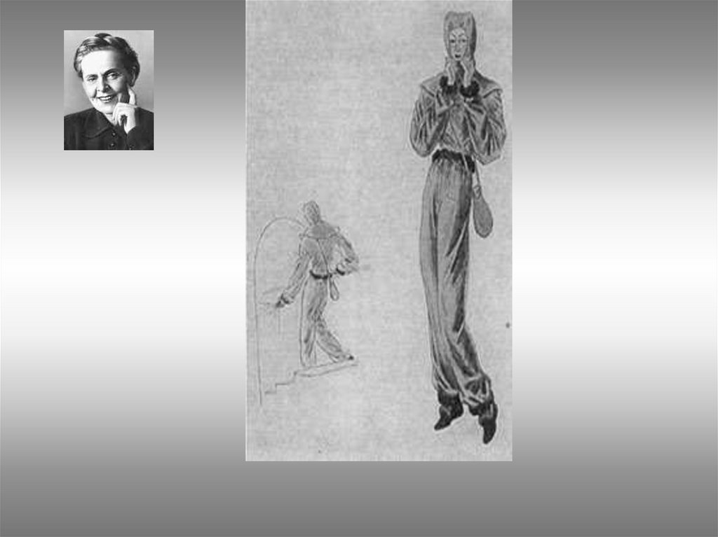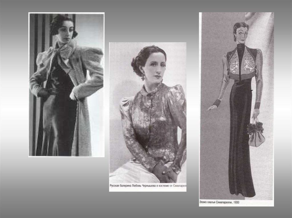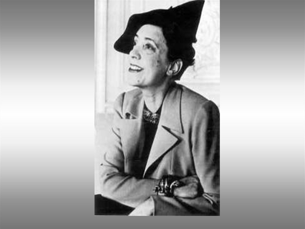 70. -1941—переезжает а США- читает лекции о моде 1945---открывает Модный дом в Париже 1954- покидает мир высокой моды и уезжает а