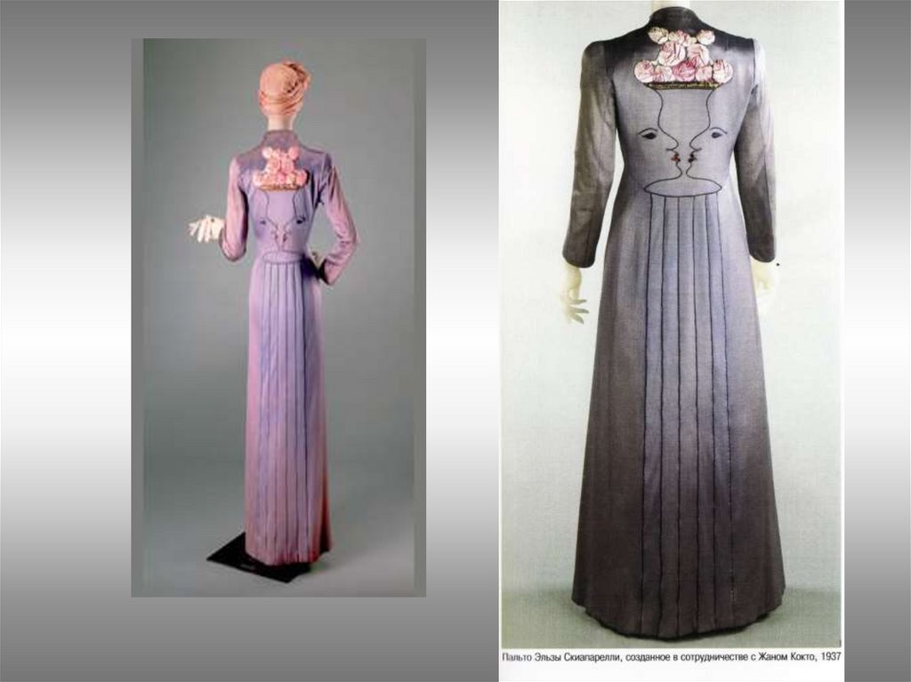 18. Метод сюрреализма впервые в моделировании был использован Эльзой Скьяпарелльли, которая дружила со многими С. и с Дали и его