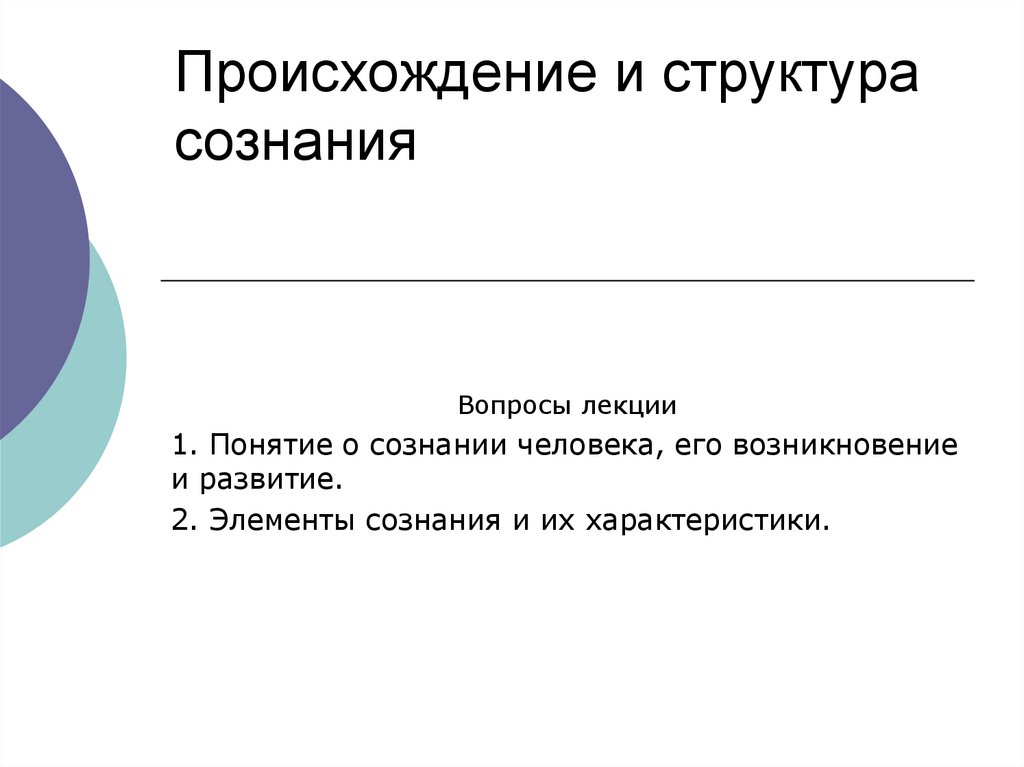 4. 1. Понятие о сознании человека, его возникновение и развитие.