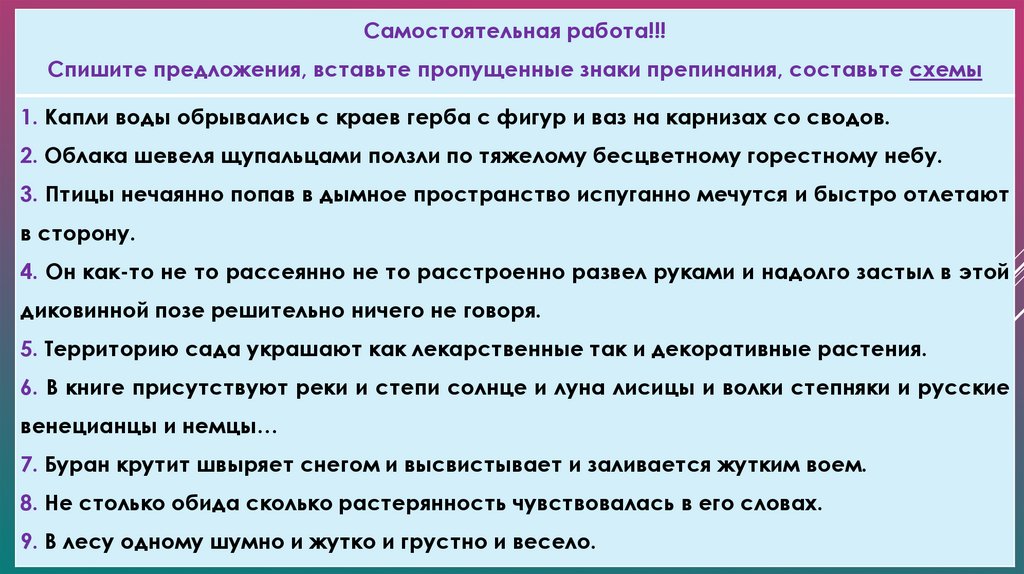 Самостоятельная работа!!!Спишите предложения, вставьте пропущенные знаки препинания, составьте схемы