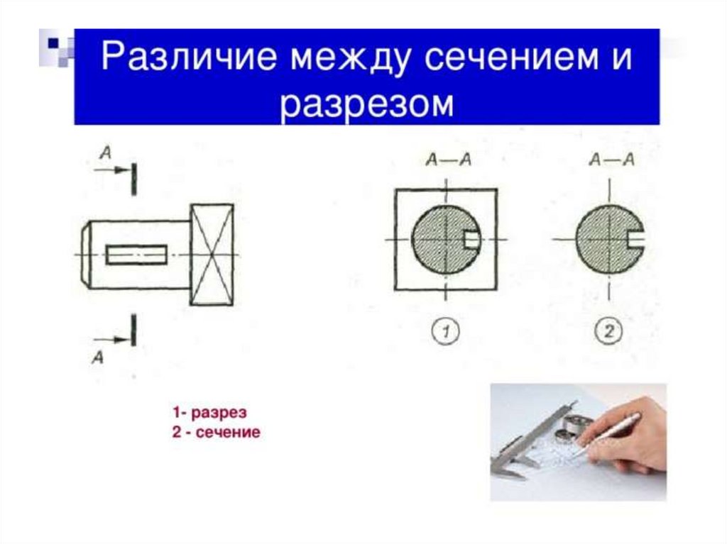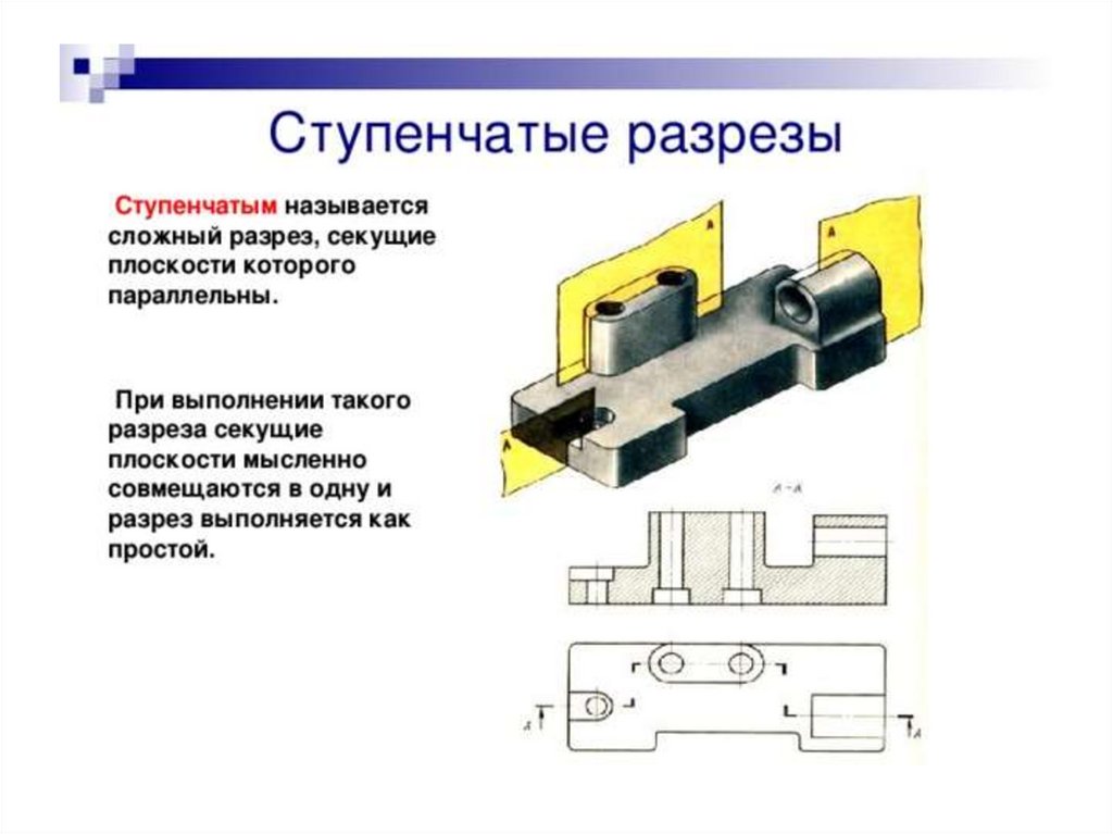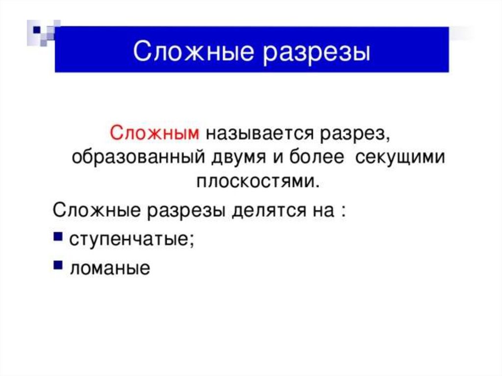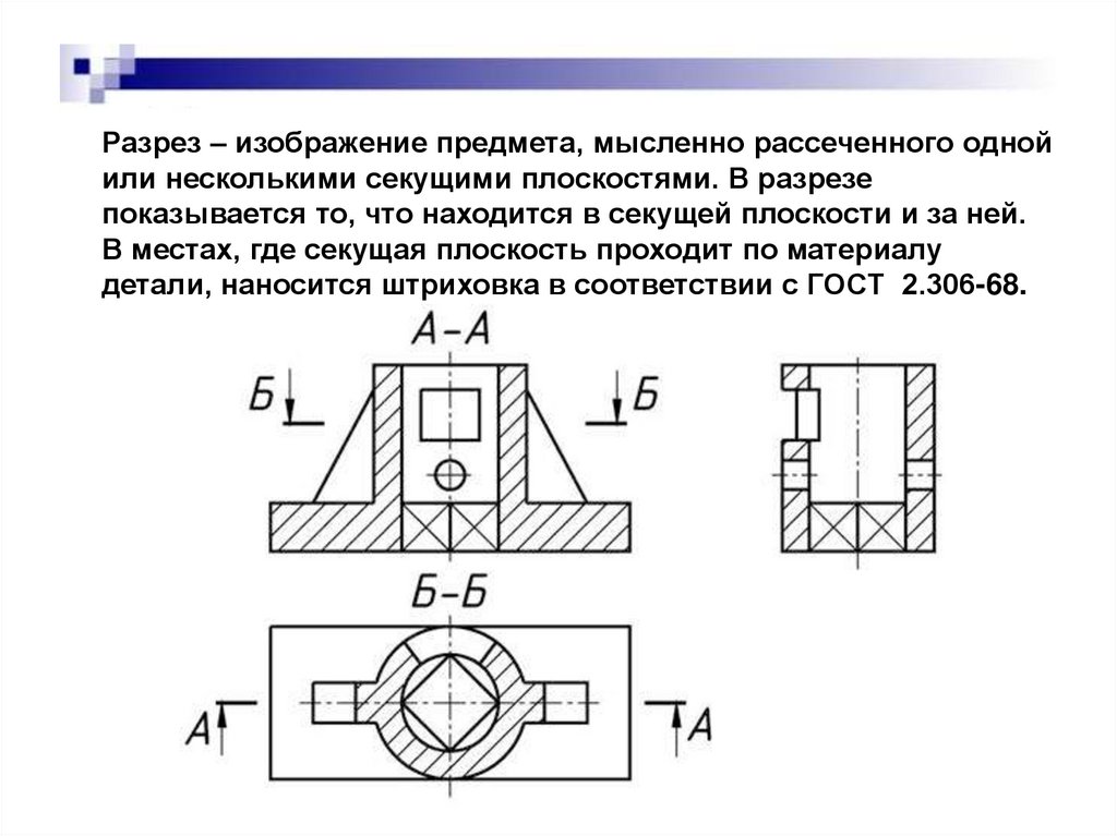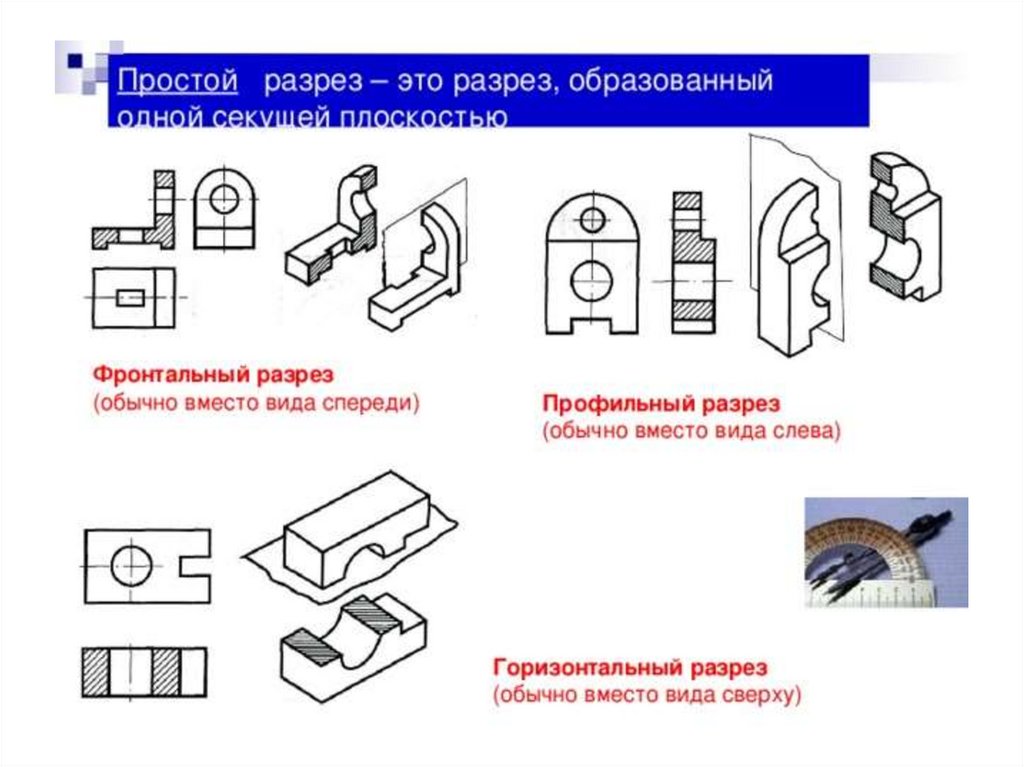 Разрез – изображение предмета, мысленно рассеченного однойили несколькими секущими плоскостями. В разрезе