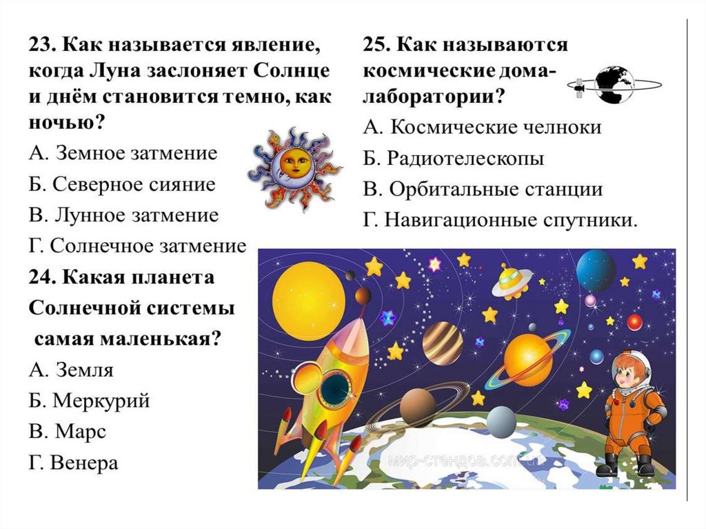 Проверь себя: «Как я знаю астрономию» - 2 часть