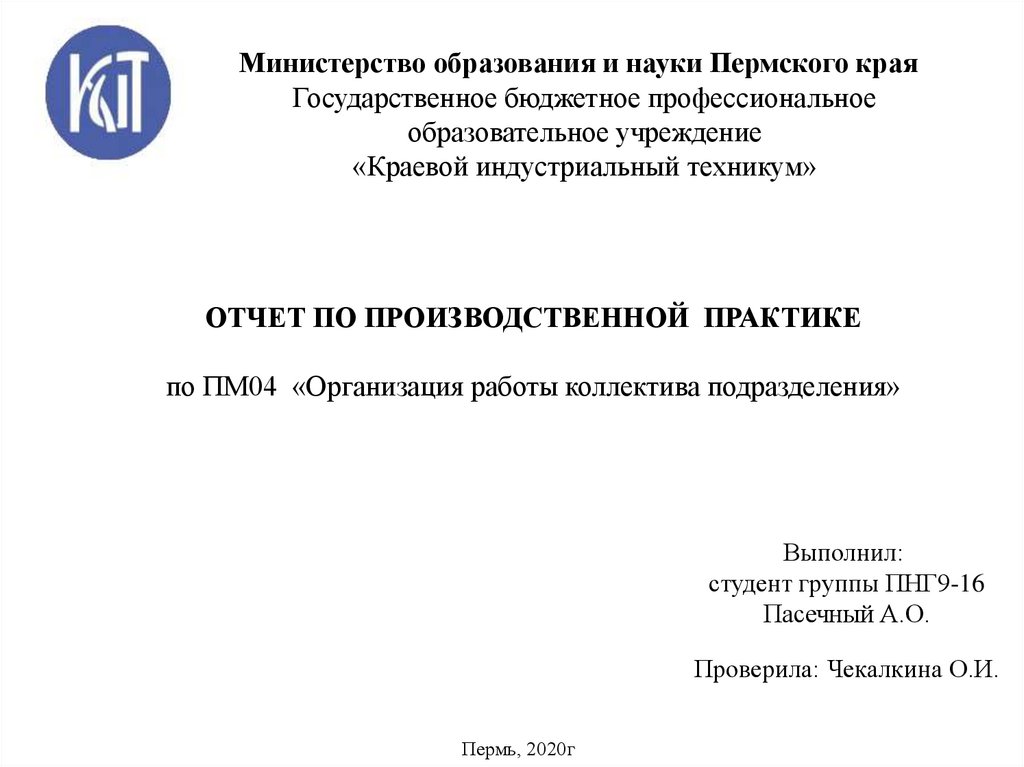 ОТЧЕТ ПО ПРОИЗВОДСТВЕННОЙ ПРАКТИКЕ