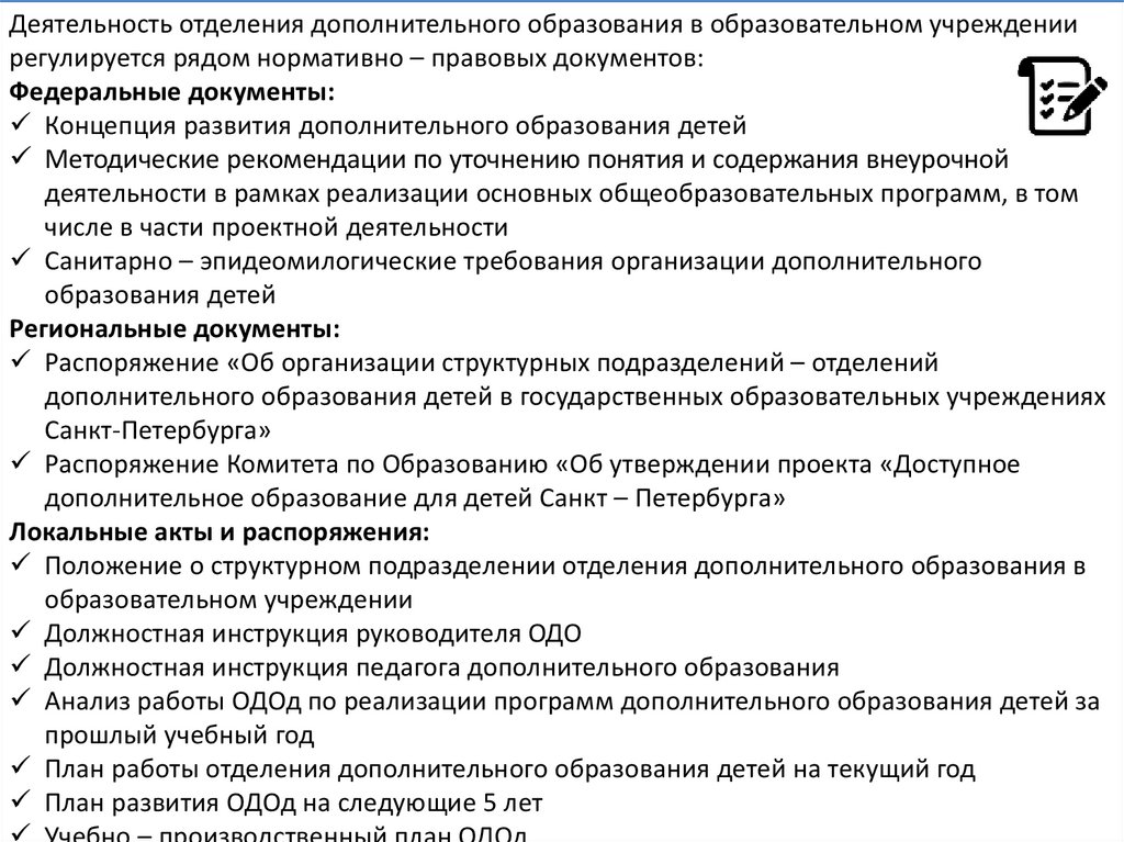 Нормативно-правовое регулирование деятельности отделения ОДО в школе
