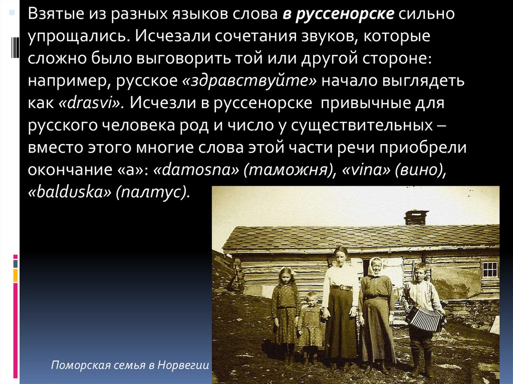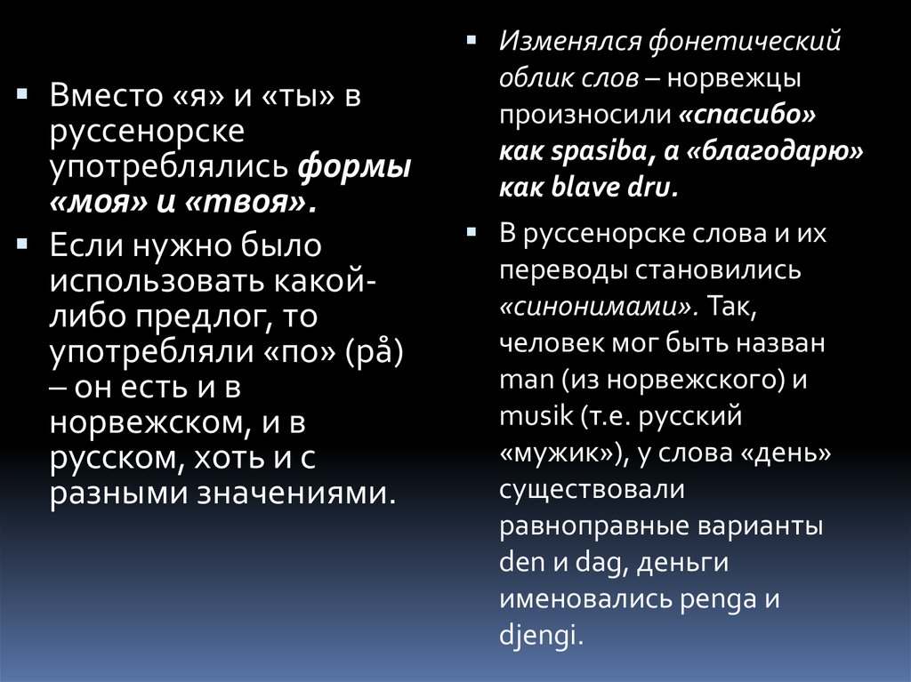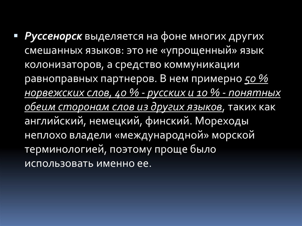 норвежских слов, 40 % - русских и 10 % - понятных