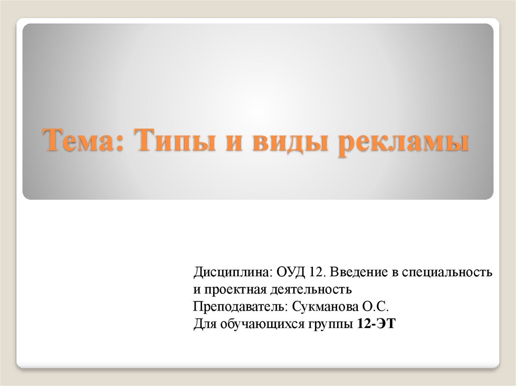 Дисциплина: ОУД 12. Введение в специальностьи проектная деятельность