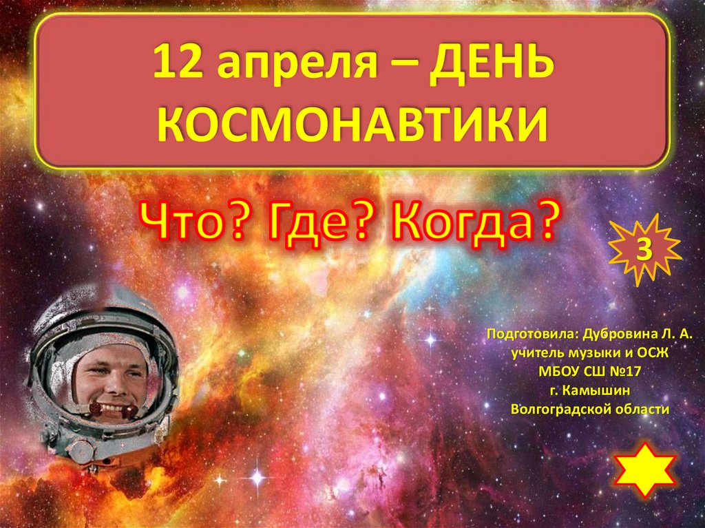 12 апреля – ДЕНЬКОСМОНАВТИКИ