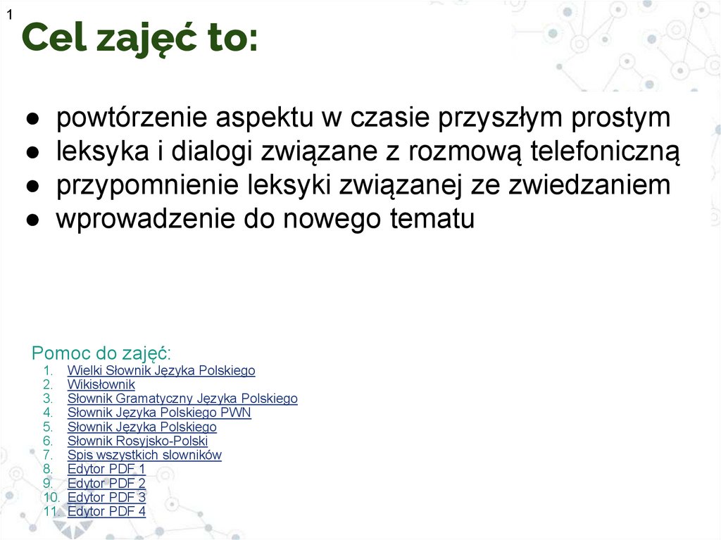 1Cel zajęć to: