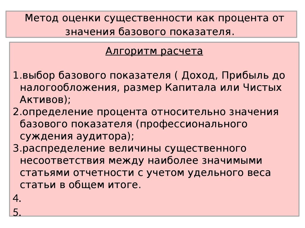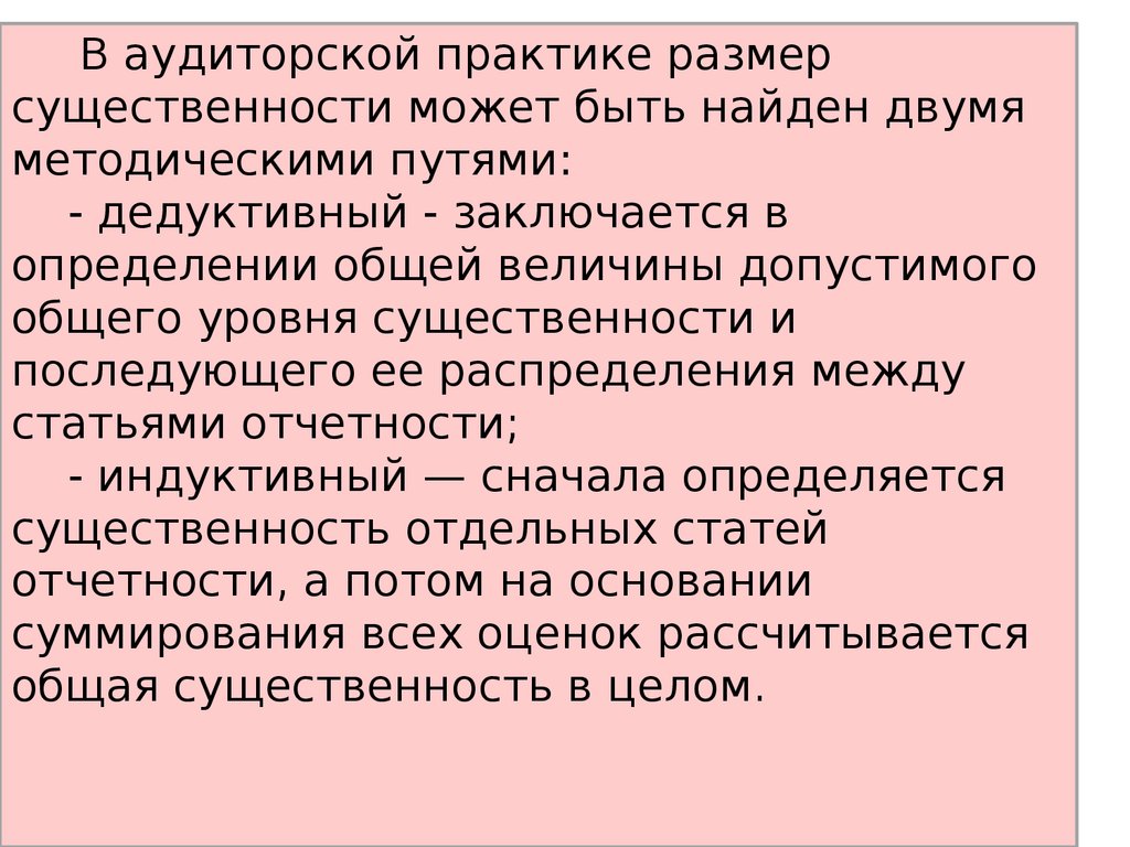 В аудиторской практике размерсущественности может быть найден двумя