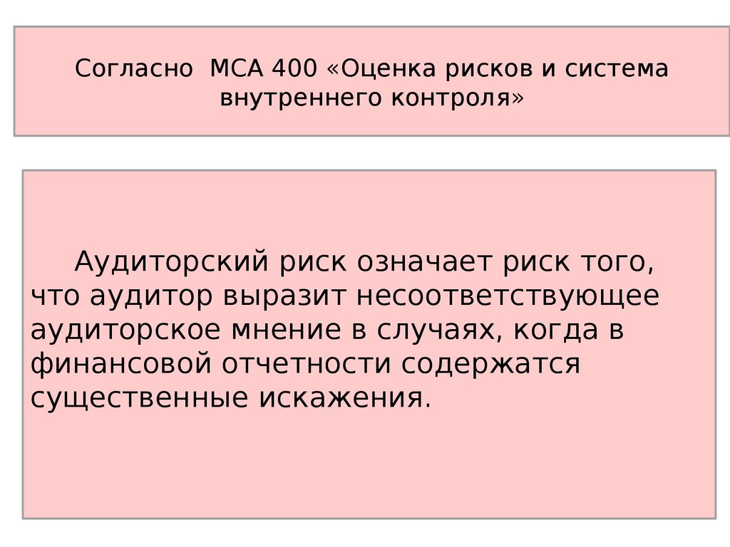 Согласно МСА 400 «Оценка рисков и системавнутреннего контроля»