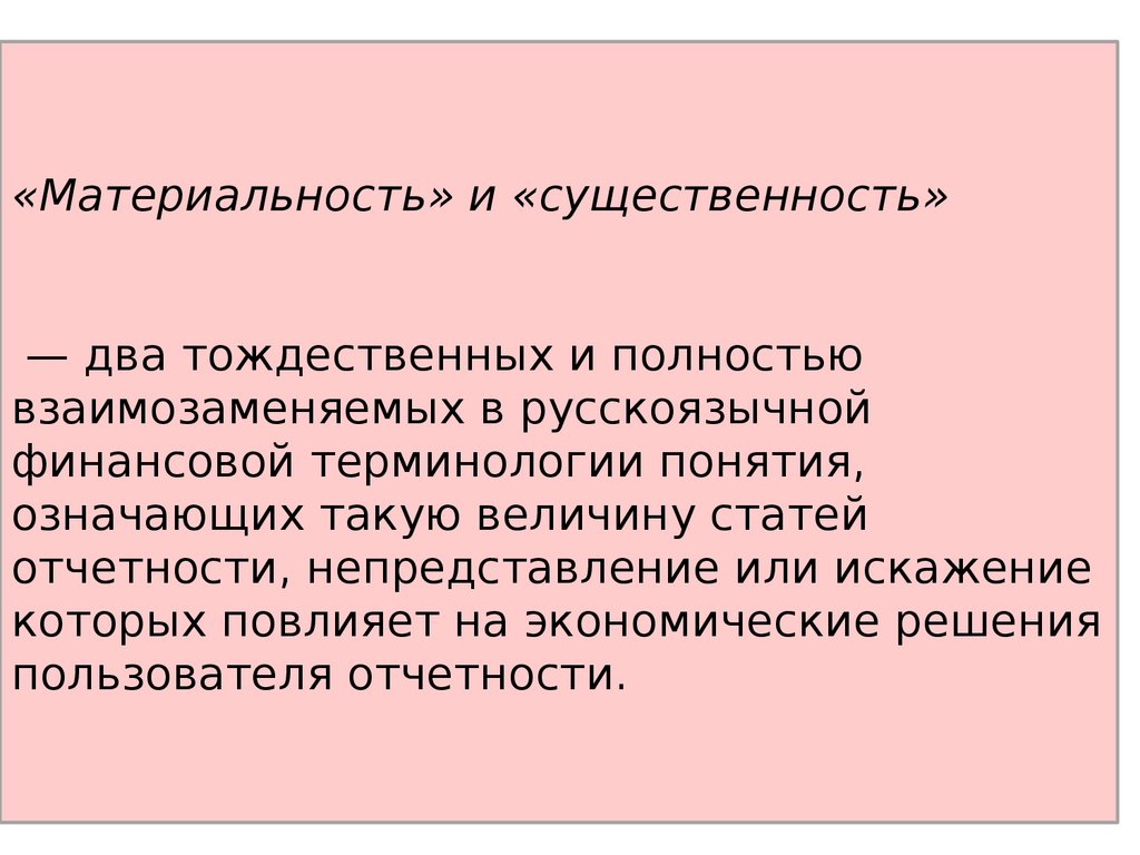 «Материальность» и «существенность»— два тождественных и полностью