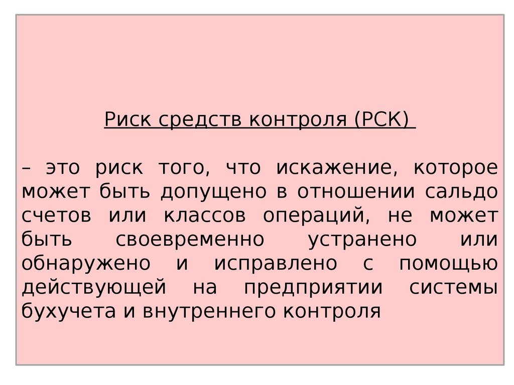Риск средств контроля (РСК)– это риск того, что искажение, которое
