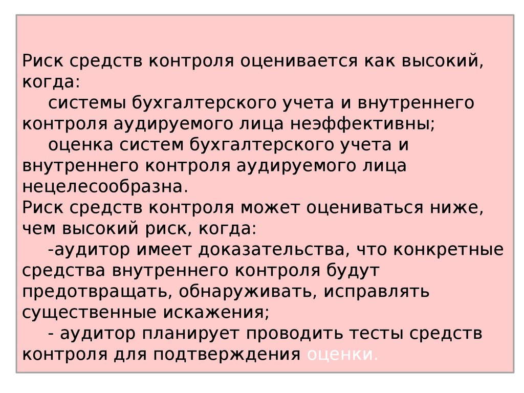 Риск средств контроля оценивается как высокий,когда: