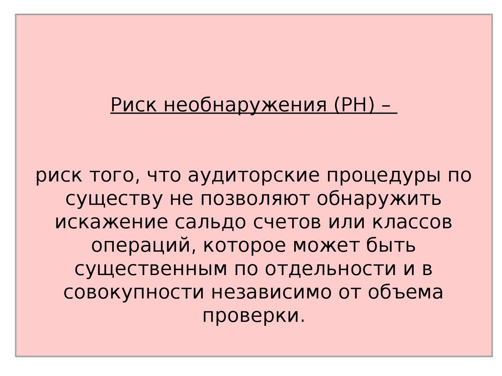 Риск необнаружения (РН) –риск того, что аудиторские процедуры по