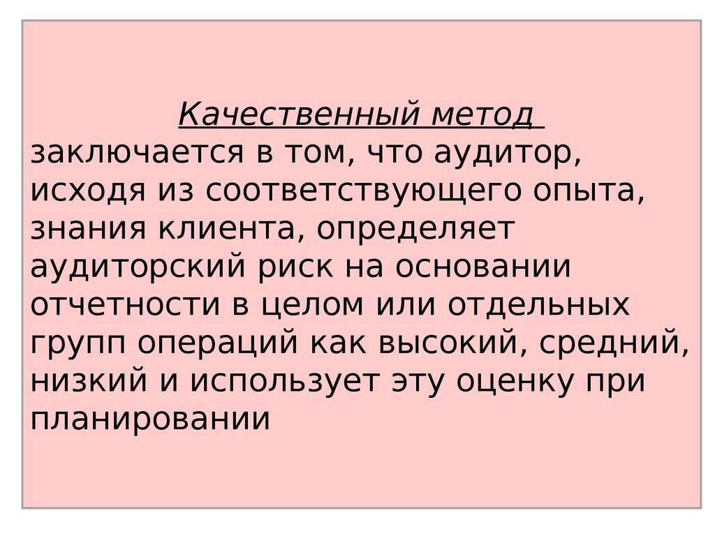 Качественный методзаключается в том, что аудитор,