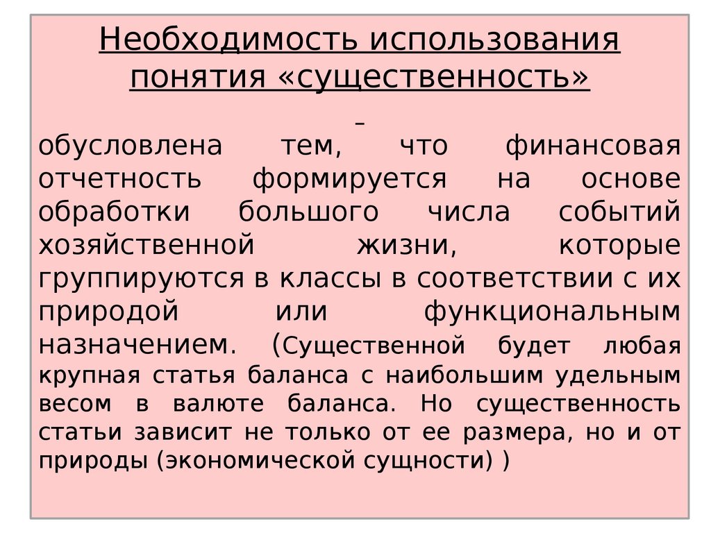 понятие «существенность»рассматривается преимущественно