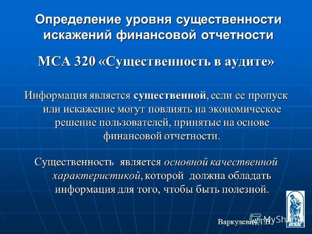 1.Существенность при планировании ипроведении аудита