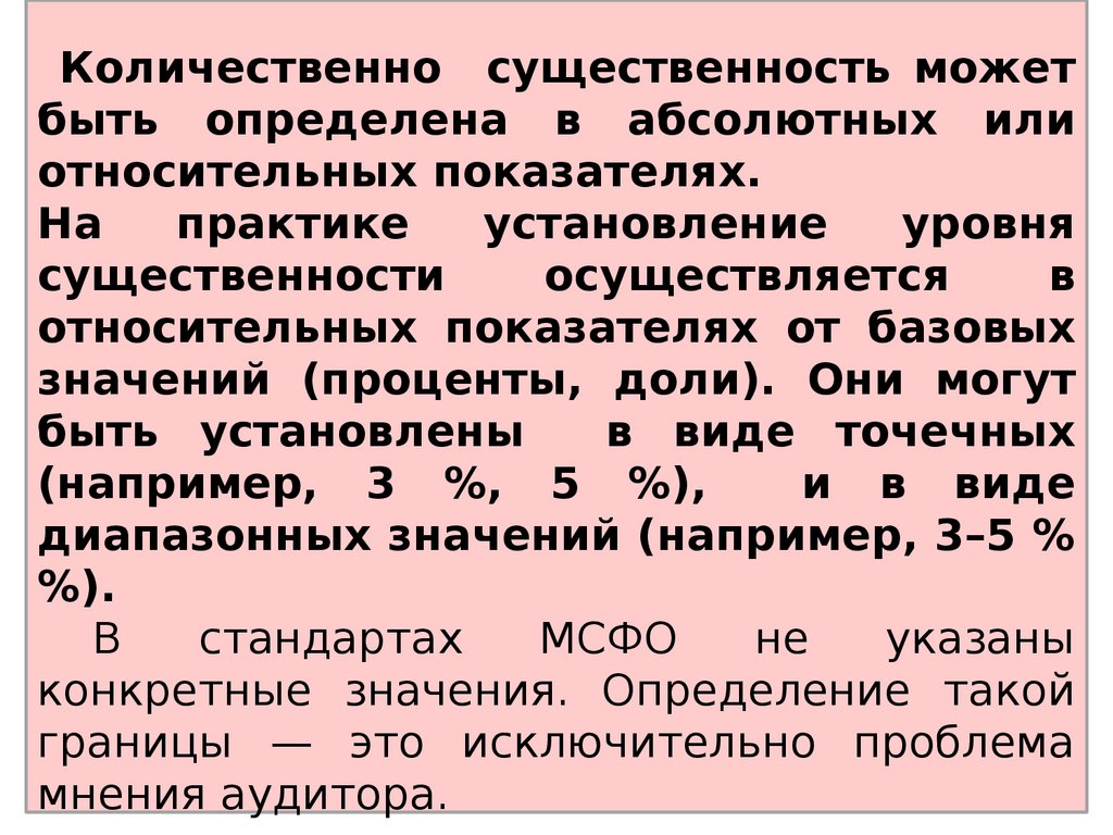 Количественно существенность можетбыть определена в абсолютных или