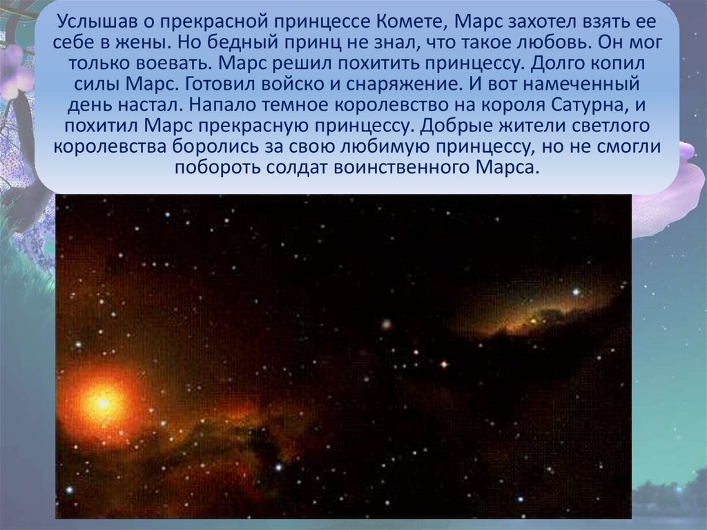 Услышав о прекрасной принцессе Комете, Марс захотел взять еесебе в жены. Но бедный принц не знал, что такое любовь. Он мог