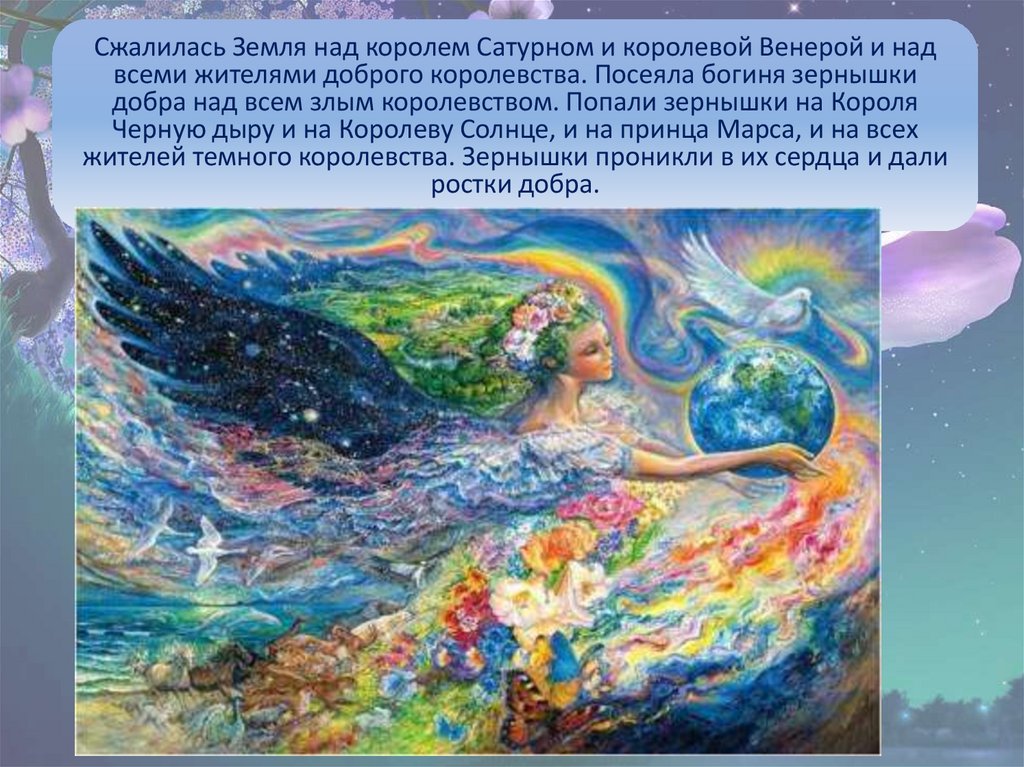 Сжалилась Земля над королем Сатурном и королевой Венерой и надвсеми жителями доброго королевства. Посеяла богиня зернышки