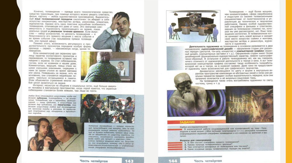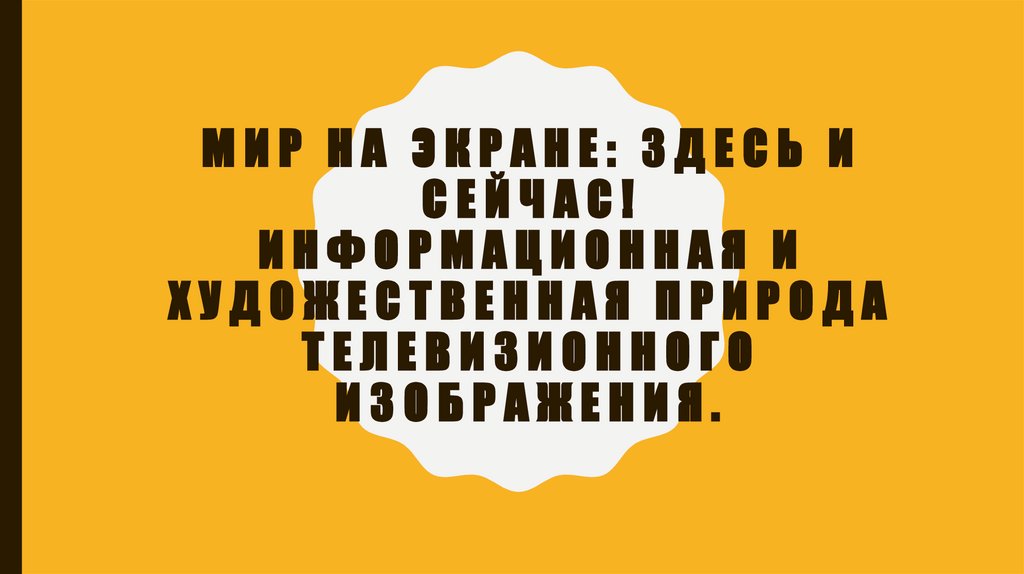 Мир на экране: здесь и сейчас! Информационная и художественная природа телевизионного изображения