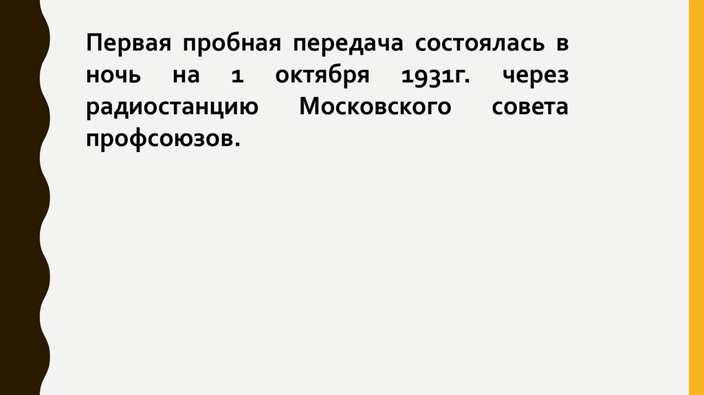 Первая пробная передача состоялась вночь на 1 октября 1931г. через