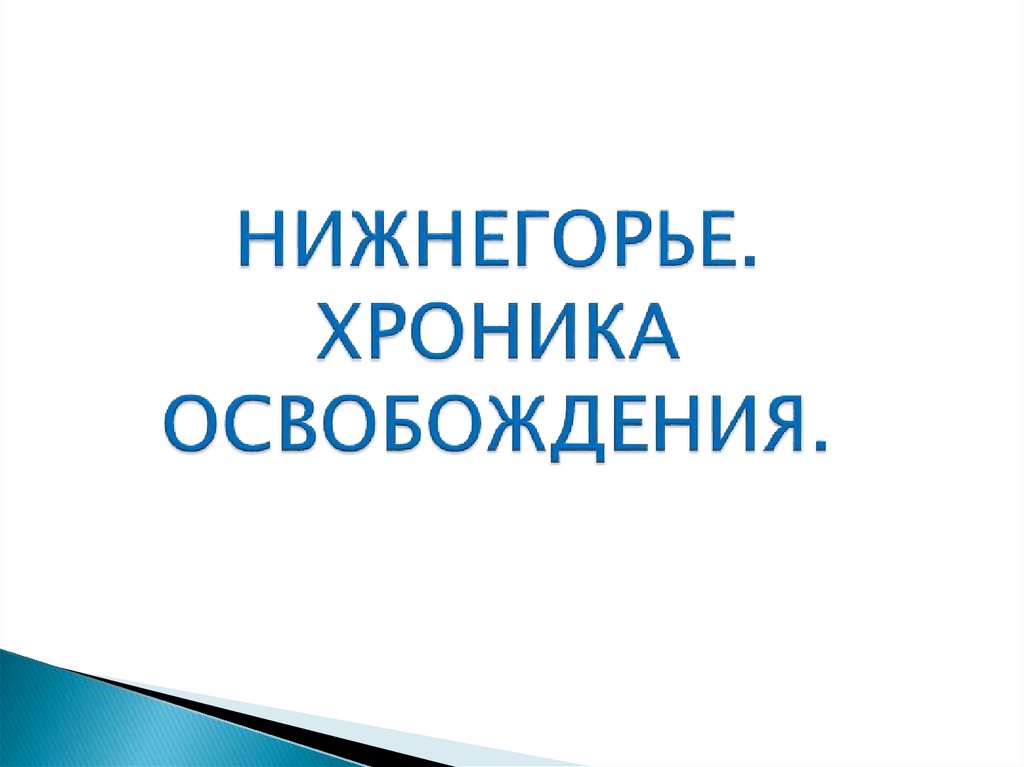 1. НИЖНЕГОРЬЕ. ХРОНИКА ОСВОБОЖДЕНИЯ.