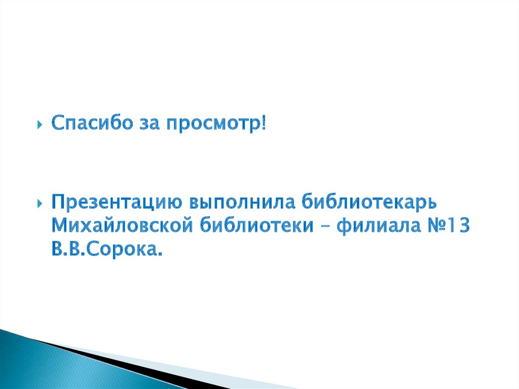 Спасибо за просмотр!Презентацию выполнила библиотекарь