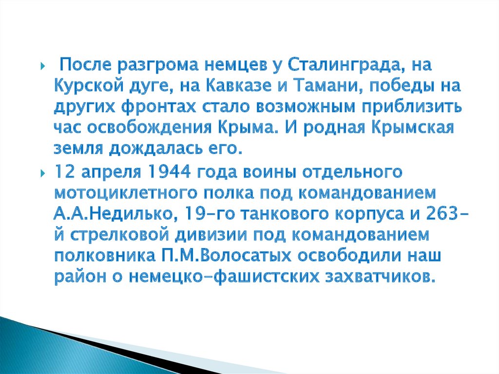 После разгрома немцев у Сталинграда, наКурской дуге, на Кавказе и Тамани, победы на