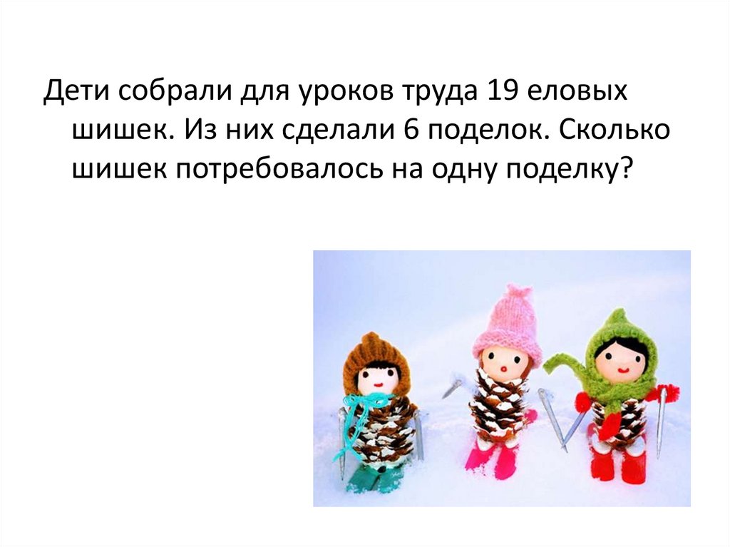 Дети собрали для уроков труда 19 еловыхшишек. Из них сделали 6 поделок. Сколько