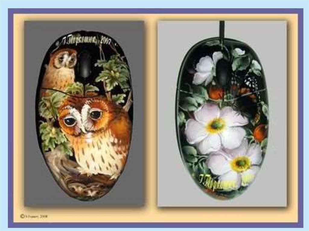 Необычные и прикольные компьютерные мыши могут стать вариантомподарка к празднику. Роспись (или декупаж) компьютерных мышей