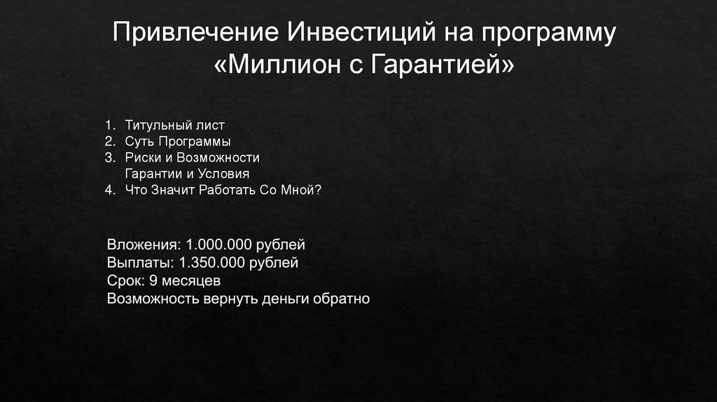 Привлечение Инвестиций на программу «Миллион с Гарантией»