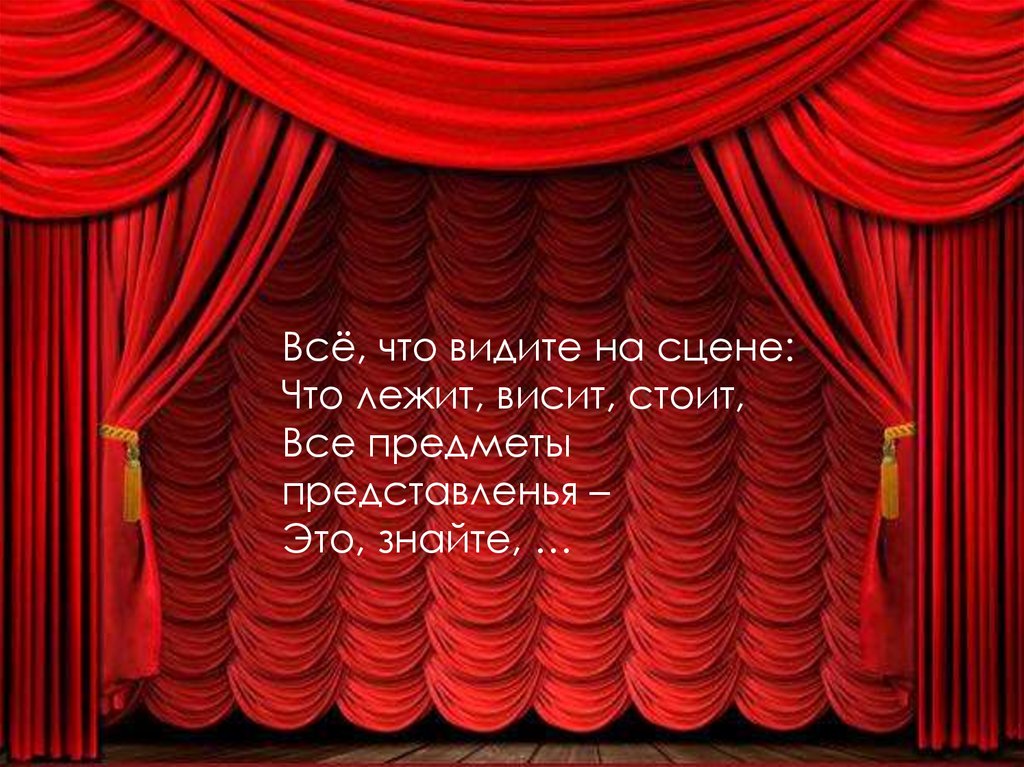 Всё, что видите на сцене:Что лежит, висит, стоит,